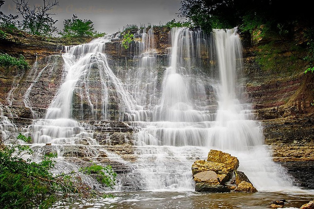 This beautiful overflow waterfall is sourced from the Chikaskia River Dam. It is in Drury, close to the border between Kansas and Oklahoma. Drury Park, where the dam is built, is located 6.5 miles to the east of Caldwell. This waterfall and its surroundings hold a lot of history. The Drury Mill – ruined by a fire in the 50’s – sits beside the waterfall. In the high rainfall season, the brown waters flow heavily down the cliff, creating a beautifully large puddle of brown-white wash-off; it’s an awe-inspiring site. If you must visit a waterfall in Kansas, be sure to visit Drury first. Drury Dam Waterfall is located at 139-135 W 175th St S, in Caldwell, Kansas. For more information, click here.