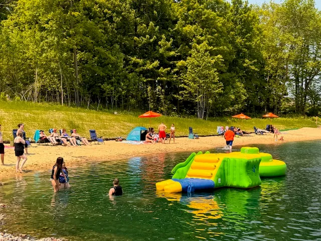 The “do nothing” name is a bit of a misnomer, as there are plenty of activities and amenities to enjoy at the campground. The centerpiece is the Campfire Cove Aqua Park, a unique beach area featuring inflatable water toys for all-day fun. The campground’s location on the Apple River also provides a beautiful backdrop for relaxation and scenic views.